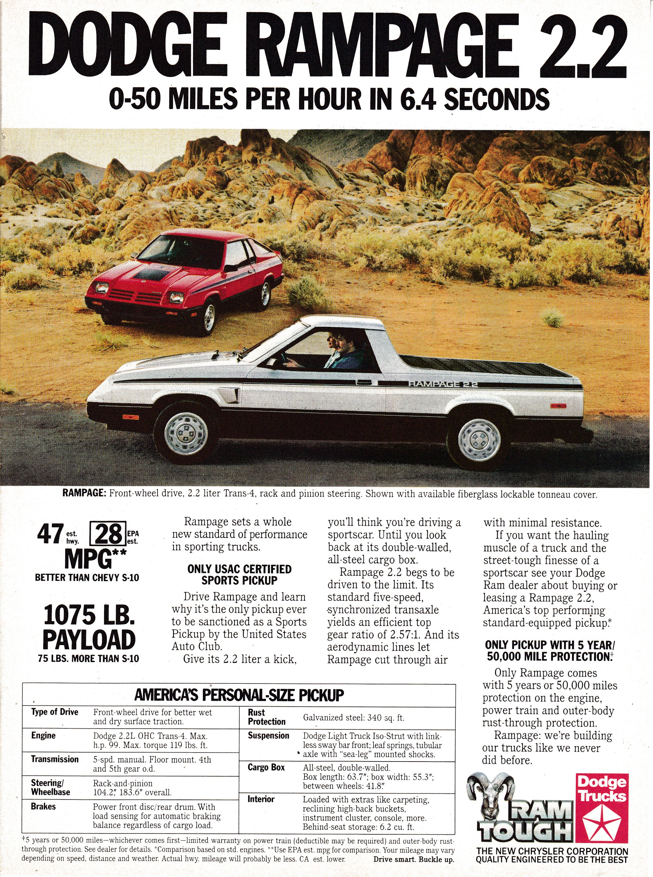 1983 Dodge Rampage 2 2 Sports Pickup Truck Original Magazine Etsy